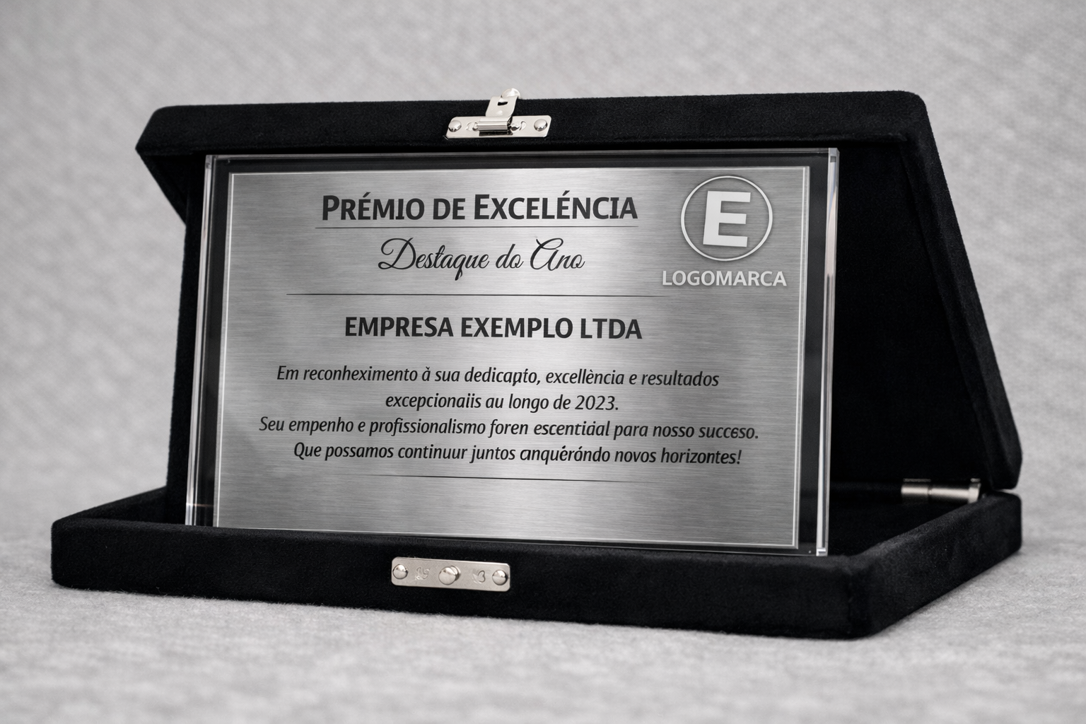 A Placa de Homenagem em Acrílico e aço escovado é a escolha ideal para premiações, reconhecimentos e celebrações especiais. Produzida em acrílico de alta qualidade, oferece resistência, brilho e acabamento elegante, transmitindo sofisticação e valorizando cada momento.
