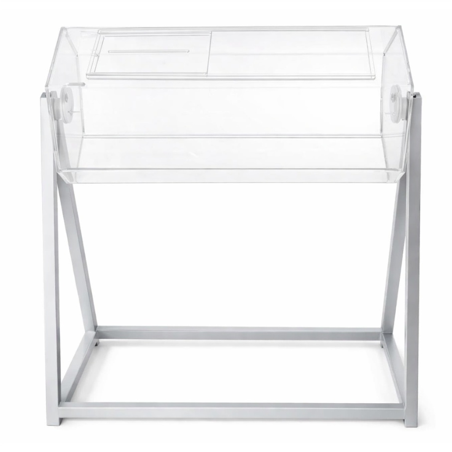 Urna giratória em acrílico com base em metal