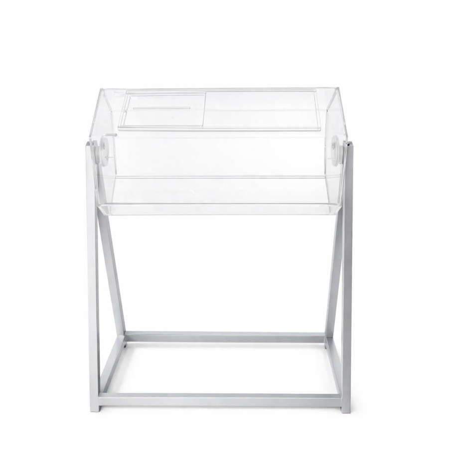 Urna giratória em acrílico com base em metal